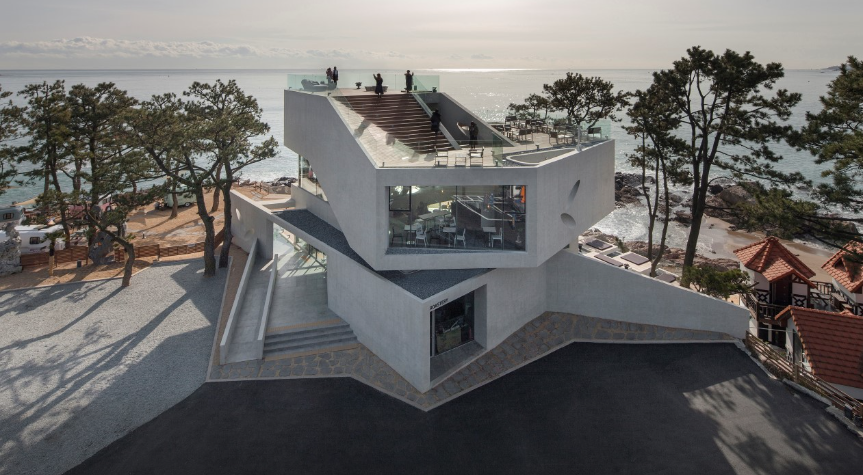 기장 웨이브온 커피는 건축문화대상을 받을 정도로 입이 벌어질 정도의 규모와 럭셔리한 인테리어가 특징입니다.